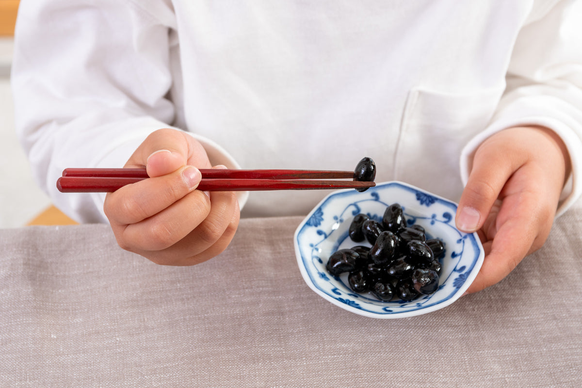 手に合う箸のサイズは「一咫半(ひとあたはん)」と言われ、利き手の親指と人差し指で直角にした時、人差指と親指を結んだ対角線の長さ(一咫=ひとあた)の1.5倍の長さが目安と言われています。お子様用のサイズについては、年齢ごとに手の大きさも変わっていきますので、靴を買い替えるように、箸のサイズも手の成長に合わせてこまめに変えらることをおすすめいたします。